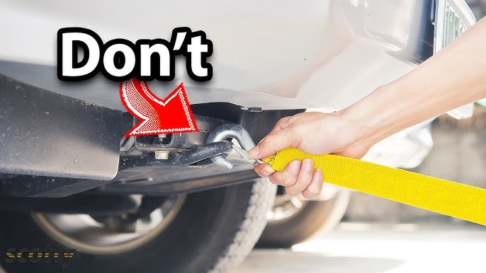 Attaching Straps Safelykeeps everyone safe. First, find the right spot on the car. Look for the metal loops under the car. These loops are made for towing. Attach the strap to these loops. Make sure the strap is tight. Check the strap twice. A loose strap can cause accidents.